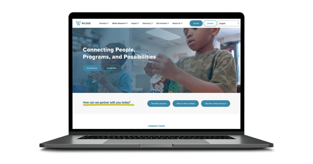 Wilder’s work is vast and multifaceted, spanning research, advocacy, and direct services that inform and strengthen one another. Each program is grounded in data, community insight and lived experience. Recognizing this unique interplay, Russell Herder began by listening. Our team met with staff across Wilder’s departments to understand their goals, aspirations and the stories they wanted to tell.